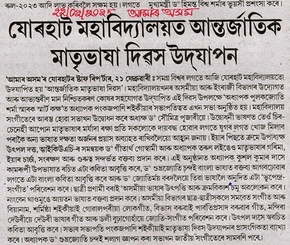 http://jorhatcollegedigitallibrary.in:8080/xmlui/handle/123456789/10| Title: | Celebration of International Mother Language Day |