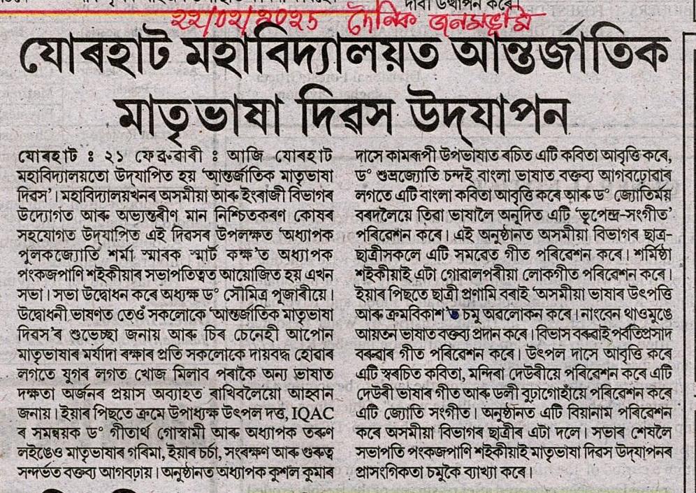 http://jorhatcollegedigitallibrary.in:8080/xmlui/handle/123456789/127| Title: | Celebration of International Mother Language Day |