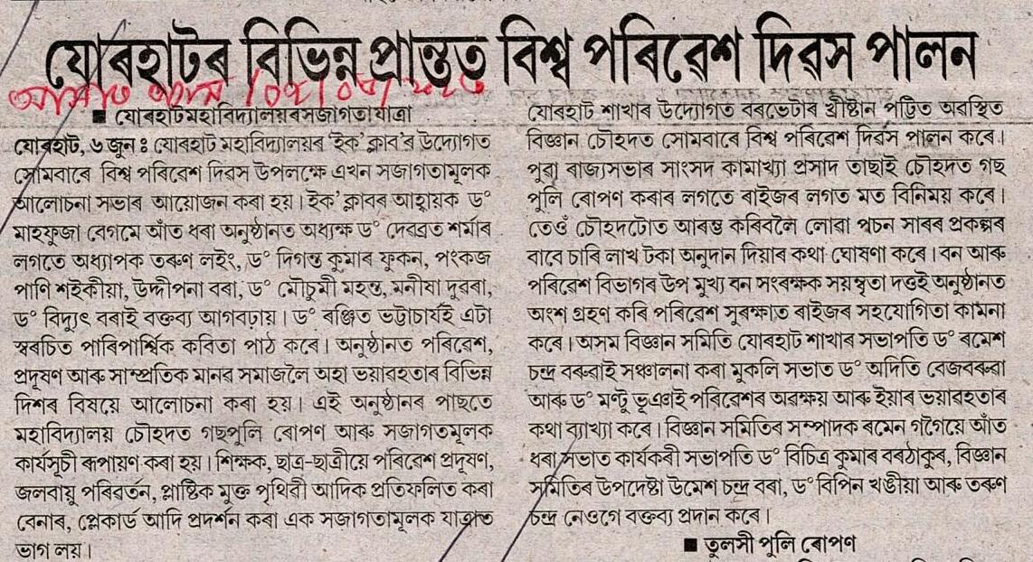http://jorhatcollegedigitallibrary.in:8080/xmlui/handle/123456789/209| Title: | World Environment Day organised by Eco Club Jorhat College |