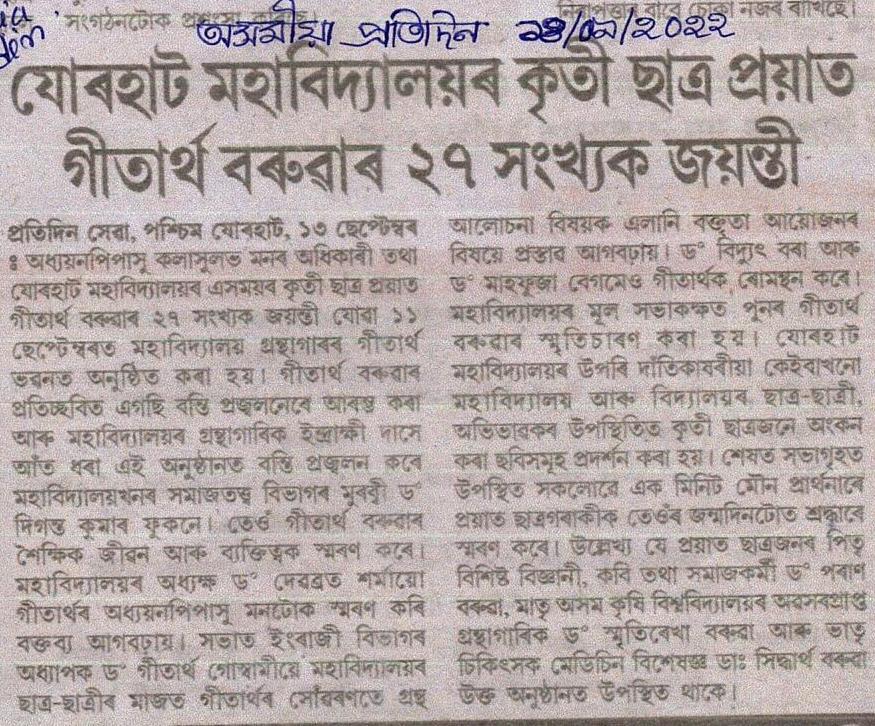 | 14_09_2022_BIRTH ANNIVERSARY PROGRAM OF CHIROJCIAN GEETARTHA BARUAH_0001_0001.jpg | BIRTH ANNIVERSARY PROGRAM OF CHIROJCIAN GEETARTHA BARUAH | 171.54 kB | JPEG | View/Open |